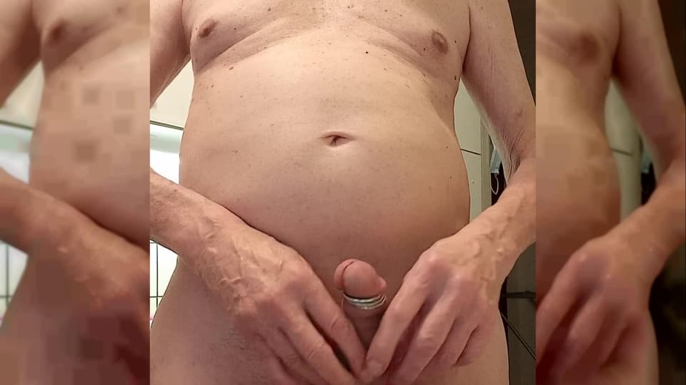 Velho gay coloca anéis de metal apertados ao redor de seu pênis