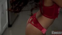Vestida com uma lingerie vermelha sexy, Vina Sky é uma pequena bomba e vai se divertir muito com esse pau grande penetrando em sua buceta!