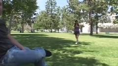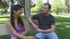 Este macho conheceu esta jovem e bela morena no parque e convenceu-a a transar em sua casa mais tarde!