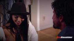 A bomba latina vai vestir roupas sensuais para encantar seu sogro e, primeiro, vai chupá-lo antes de ter sua buceta depilada.