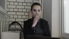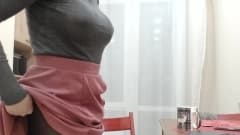 A linda transexual tenta trabalhar no computador enquanto se masturba e fica cada vez mais excitada.