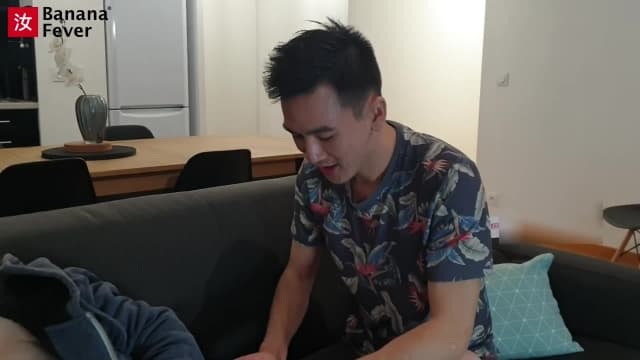 Esse chinês decide transar com uma jovem chinesa de cabelos loiros, começa comendo seus peitos, ela acorda e lhe faz um boquete.