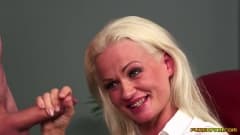 Loira madura ensina uma jovem a chupar o pau de um homem