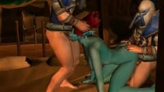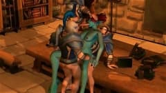 Em um castelo sombrio, um troll hentai aparece na sala e é fodido em várias posições pelos cavaleiros do pau redondo.