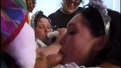 Essa anã é fodida com força durante essa festa louca, pois ela quer sentir esse pau comprido enchendo-a completamente