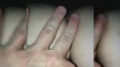 O cara massageia sua bunda e sua buceta peluda enquanto ela assiste TV relaxada e a deixa muito molhada.
