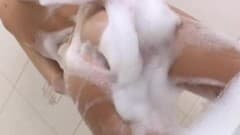 Esta jovem morena, gostosa e macia acaricia suavemente no chuveiro para que você levante seu pau muito rapidamente! A não perder!