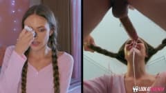 O rímel dessa mulher vai pingar tanto quanto o esperma desse cara! Não há tempo para tirar completamente o jeans dela antes que o pau comece a jorrar!