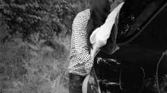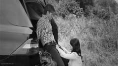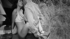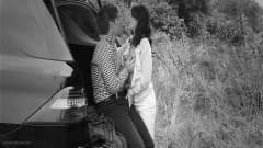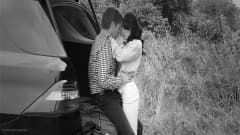 Um casal se beija no banco de trás do carro dela e depois ele a fode em várias posições, debaixo de um edredom.