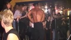 O bonitão Adonis tira suas roupas no palco e mostra seu corpo perfeito, o que deixa as mulheres loucas. Nós queremos muito mais