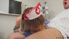 Pierce Paris está com a enfermeira gostosa Lena Moon nessa cena quente! Ela o penetra e o faz gozar!