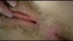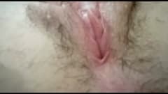 Aqui está uma mulher madura com uma buceta peluda que se toca para ficar intensamente molhada!