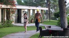 O preto tarado gosta da visual da Yhivi em bikkini por isso não vai perder a oportunidade de seduzir ela até conseguir comer a sua bucetinha na piscina.