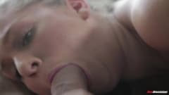 Alex Chance, uma loira com belos peitos que vai transar com o homem em diferentes posições até não aguentar mais e a ejaculação acabar em seus peitos.