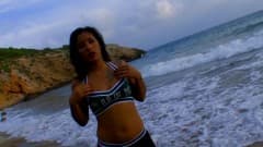 Esta morena fica absolutamente ligada pelo som das ondas, o que lhe da vontade de falar sobre sexo anal na praia!