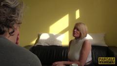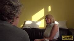 A loira britânica Amy chupa e cavalga apaixonadamente o enorme pênis de Pascal nesse pornô imperdível.