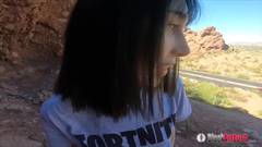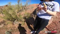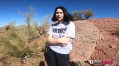 Uma jovem morena sobe nas rochas onde uma surpresa a aguarda - um belo homem negro nu com um pau enorme! Depois de uma felação, Malory recebe uma boa foda