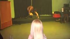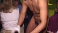 Três caras vão fazer um show de strip tease na frente de todas essas mulheres, eles as provocam e esfregam suas pilas contra elas, seus corpos e rostos