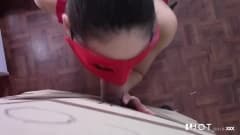Este morena usa máscara para não ser reconhecida mas o resto você vê tudo! Ela adora chupar rola, ser fodida com força no cuzinho e ficar lambuzada!