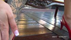 Emma Mae está com a xoxota à mostra nesta cena ao ar livre