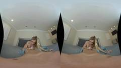 Uma jovem loira com uma bela bunda se curva sobre o pau de seu amante e o chupa, ele acaricia sua buceta e ela mija nela em uma cena virtual!