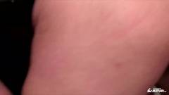 Uma mulher madura, de cabelos escuros e óculos, fica vermelha de excitação e revira os olhos enquanto seu amante perfura seu traseiro.