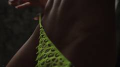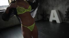 Essa bomba vai nos mostrar seu corpo de todos os ângulos, usando um lindo fio dental amarelo e até tirando o sutiã!