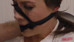 Sexo anal missionário e estilo cãozinho no banheiro, entre Chanel Preston e James Deen. A morena adora levar no seu buraco do cu dilatado