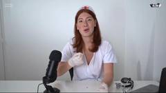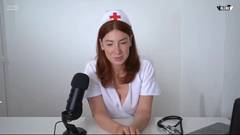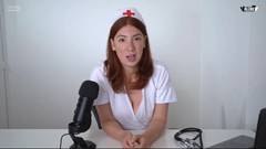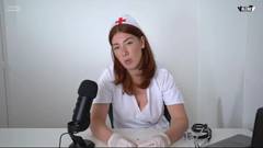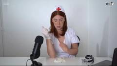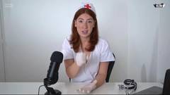 A linda enfermeira ruiva, que terminou seu turno, concordou em se sentar em frente ao microfone para responder a perguntas no ASMR e mostrar seus peitos!