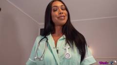 A própria enfermeira morena se masturbando com dildos