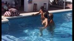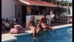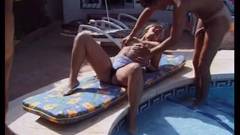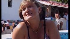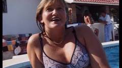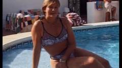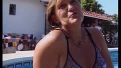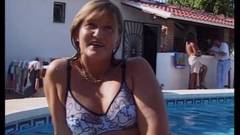 Esta coroa madura vai passar um dia na piscina com dois machos e, neste momento, ela só está esperando para ser fodida por ambos.
