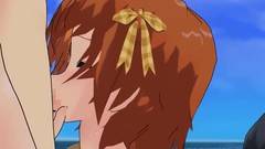Assim como no título deste vídeo, uma bela e jovem vadia hentai de cabelos ruivos chupa o pau de um cara em uma praia!