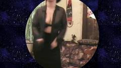 Uma mulher com um chapéu preto fica nua na frente da câmera. Essa garota gorducha de cabelo curto tem peitos incríveis!