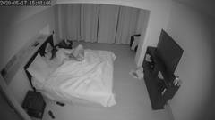 A morena acorda no meio da noite querendo chupar o pau do marido, se esquecendo da câmera de vigilância.