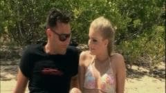 A gostosa loira fica tão excitada em esse ambiente de sol e relaxe que não se contém e decide liberar pra esses dois machos que concordam completamente com seu estado de espírito!