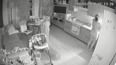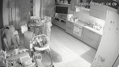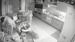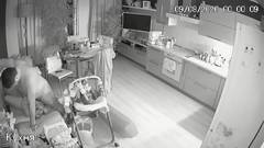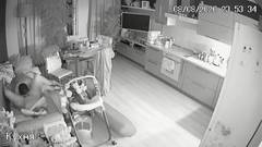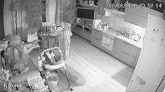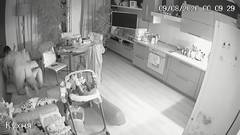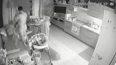 Esse casal gosta de uma sessão de foda na cozinha, esquecendo a câmera de vigilância. Ele lambe a xoxota dela, ela pega boquete gostoso antes de fuder