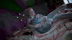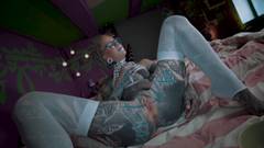 Garota com seu corpo todo tatuado e seus brinquedos sexuais extremos