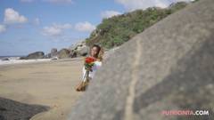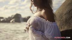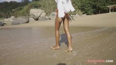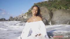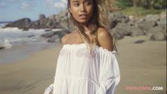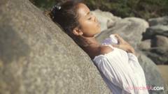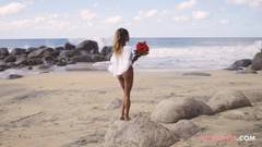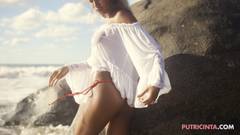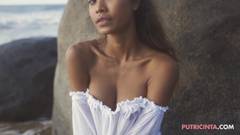 Nesse sensual vídeo ao ar livre, a sublime Putri Cinta acaricia sua delicada rata com pétalas de rosa vermelha numa praia paradisiaca