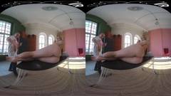 Um vídeo de RA em que uma bela atriz hardcore se deita nua num sofá e seu corpo é preparado com maquiagem para filmar uma cena