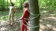 Eles mudaram a configuração. No meio do nada, ela decide punir suas escravas sexuais. Ela os acorrenta e as faz chupar um enorme dildo