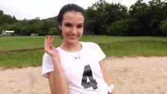 No meio de uma sessão de treinamento, Sapphira faz uma pausa para se masturbar em sua buceta depilada.