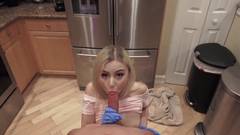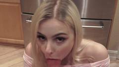 A loira Aria Banks esperou por seu homem em casa e, quando ele voltou, ela abriu a boca e a buceta para satisfazê-lo!