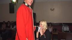 Nesse clube de striptease libertino, homens de uniforme tiram suas roupas e mulheres excitadas chupam suas piças