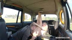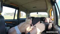 A loira checa entrará no táxi, aquecerá o motorista e mostrará seus peitos, o motorista vai foder ela na parte de trás do carro e ela adora essa putaria.