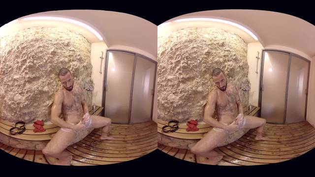 Esse é um vídeo em VR em que você pode ver esse cara gostoso no chuveiro se masturbando e gozando para você, você não pode perder.