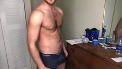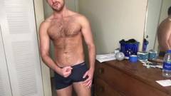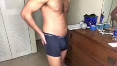 Esse amador está peludo e excitado na frente da câmera se masturbando sozinho em casa