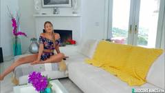 Essa jovem Gizelle Blanco com seus pés descalços dá um trabalho de pés para esse homem Charles Dera e depois pega boquete e trepa seu grande pinto na POV.