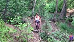A rabuda com mamas enormes vai fazer uma caminhada na floresta. Quando chega ao destino ela tem sua buceta lambida e fodida e paga boquete até o facial!