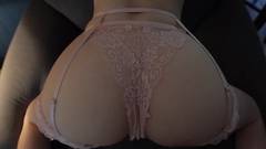 Sua namorada recebeu uma calcinha de renda rosa nova e não vê a hora de estragá-la enquanto é violentamente fodida.