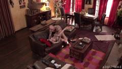 As câmeras de segurança capturam a bela jovem recebendo uma dura de um cara careca tatuado e muito duro. Ela parece estar gostando.